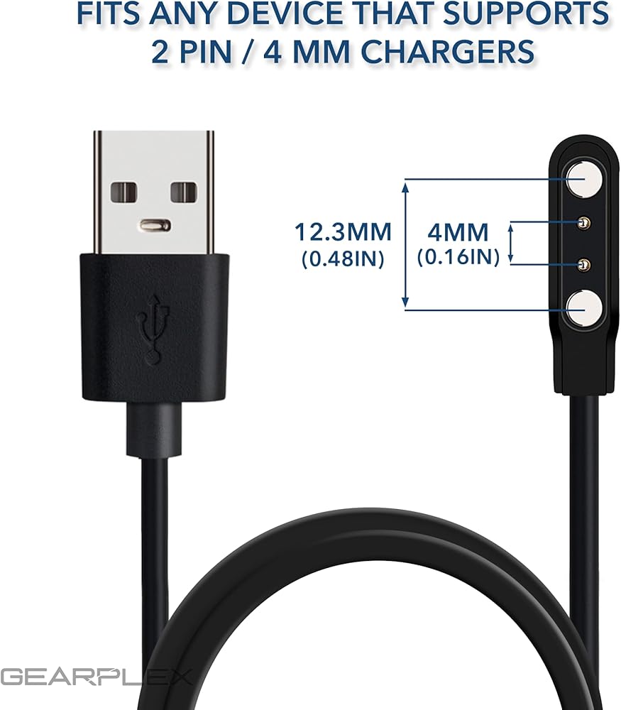 Magnetic Smart Watch Charging Cable Compatible with Apple, Samsung, and Fitness Watches, Quick Charge with 2-Pin Connections, USB Type-A, 4.0mm (USB Type A)