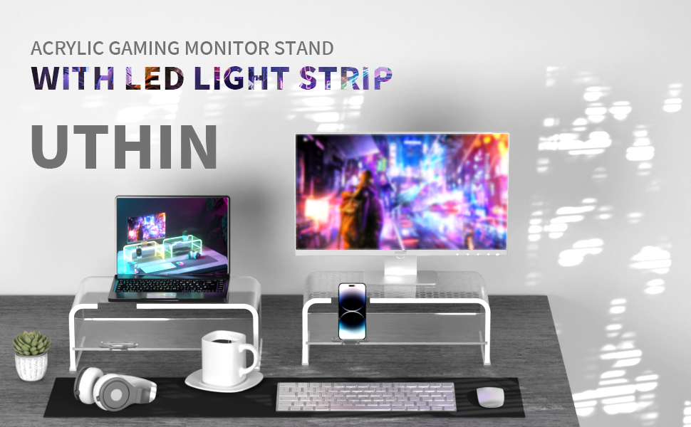 High-quality Acrylic: UTHIN Acrylic monitor stand made of transparent premium Grade A acrylic, its provide a crystal-clear transparency. Not only use for office, also a great choice for toy stand/home decor.