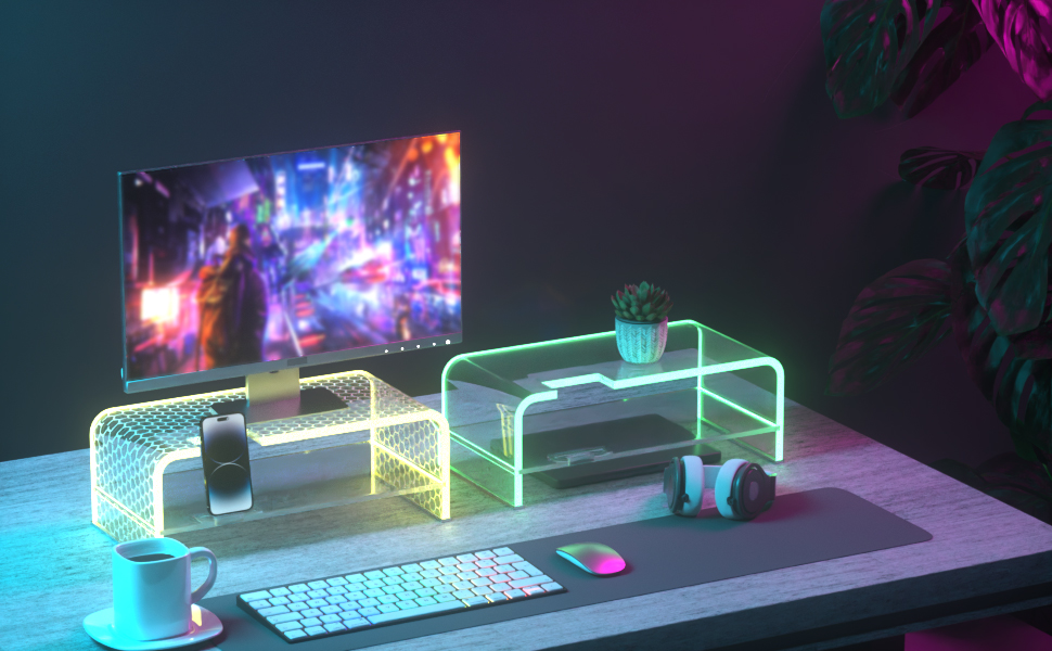 New Lighting Design: This computer stand innovatively designed with built-in ambient LED strip, the LED light strip has a variety of color combinations, which you can adjust through to make your desktop more cool.