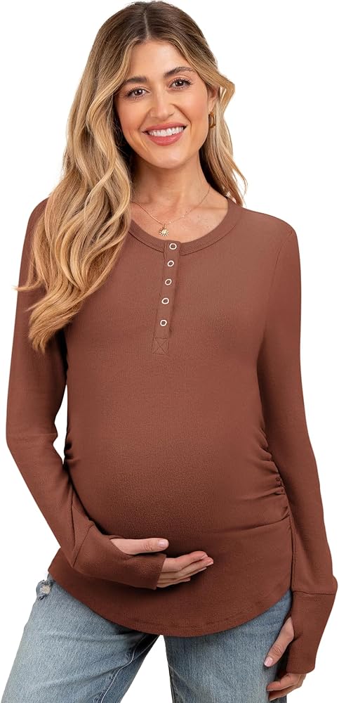 Maternity Long Sleeve Shirt-FMEYOA Maternity Tops is made of soft fabric, comfortable, skin friendly and warm. This cute maternity shirt is lightweight and breatheable, super cozy. This nursing top fits every mommy body type, allowing every pregnant woman to find her own beauty.