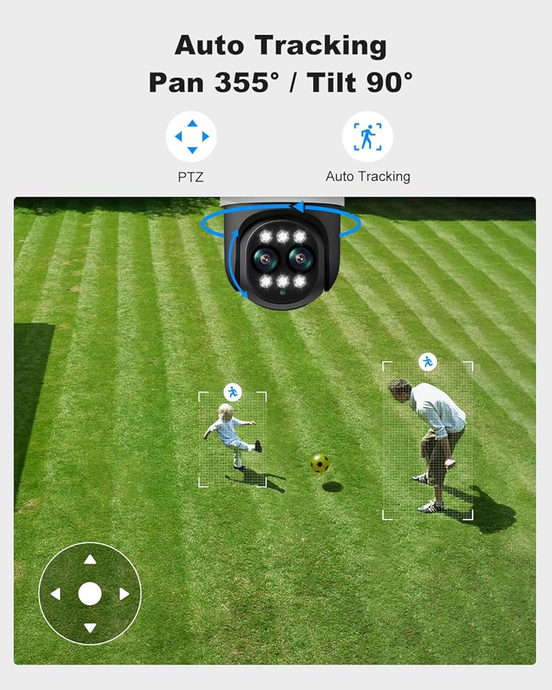 【Human AutoTracking & PTZ Control】Our PoE security camera system has an intelligent auto-tracking feature that automatically tracks movement within the field of view. This CCTV camera security system equipped with horizontal 355 degrees and vertical 90 degrees can provide a all-around surveillance area without blind zone, making it ideal for home security and wired cameras on large properties. Stay connected and secure with this adaptive surveillance solution designed to keep you informed and protected at all times.