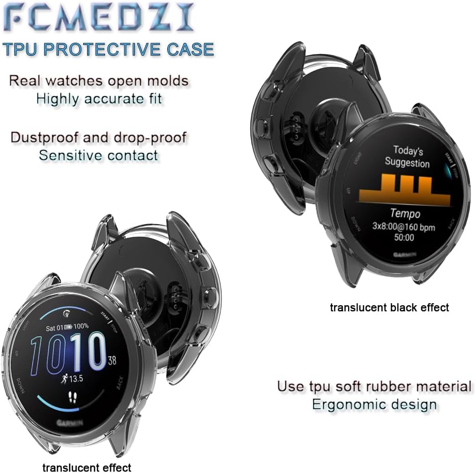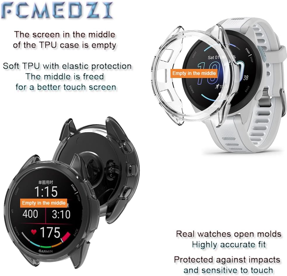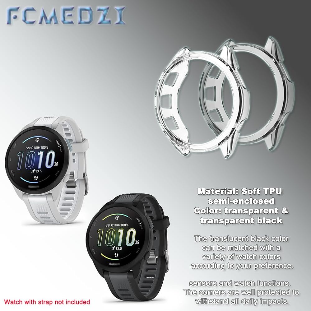 "(3 Pieces) Glass screen protector and a purple case are only compatible with Garmin Forerunner 165 Music smartwatch, not applicable to other models.Garmin Forerunner 165 screen protector is made of tempered glass 9H hardness 2.5D curved edge design, the product transmittance is: 98% Anti-reflective up to: 98%, high definition and clear. Touch sensitivity, oleophobic layer technology, smooth surface. Forerunner 165 Music case is made of high quality ultra-thin TPU soft rubber material, does not affect the accuracy of the touch screen, easy access to all ports and buttons, does not interfere with the strap insertion or sensors. Made exclusively for Garmin 165 Music Purple. Sequence, sweatproof, waterproof, soft, lightweight, durable, can well protect the smartwatch from being scratched or bumped by hard objects and a wonderful wearing experience.