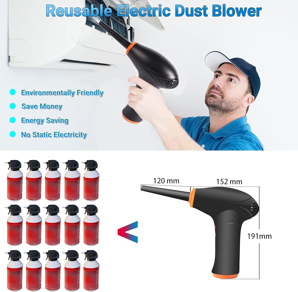 【Rechargeable and Portable】Our electric air duster only 9.96*2.76*7.64 inch and the weight is only 485g,it's convenient to carry out.The air duster has 15000mAH powerful battery, it can use 5V/2A adapter for charging and fully charger need about 5.5h .You can charge it through the computer,power adapter, power bank and so on.