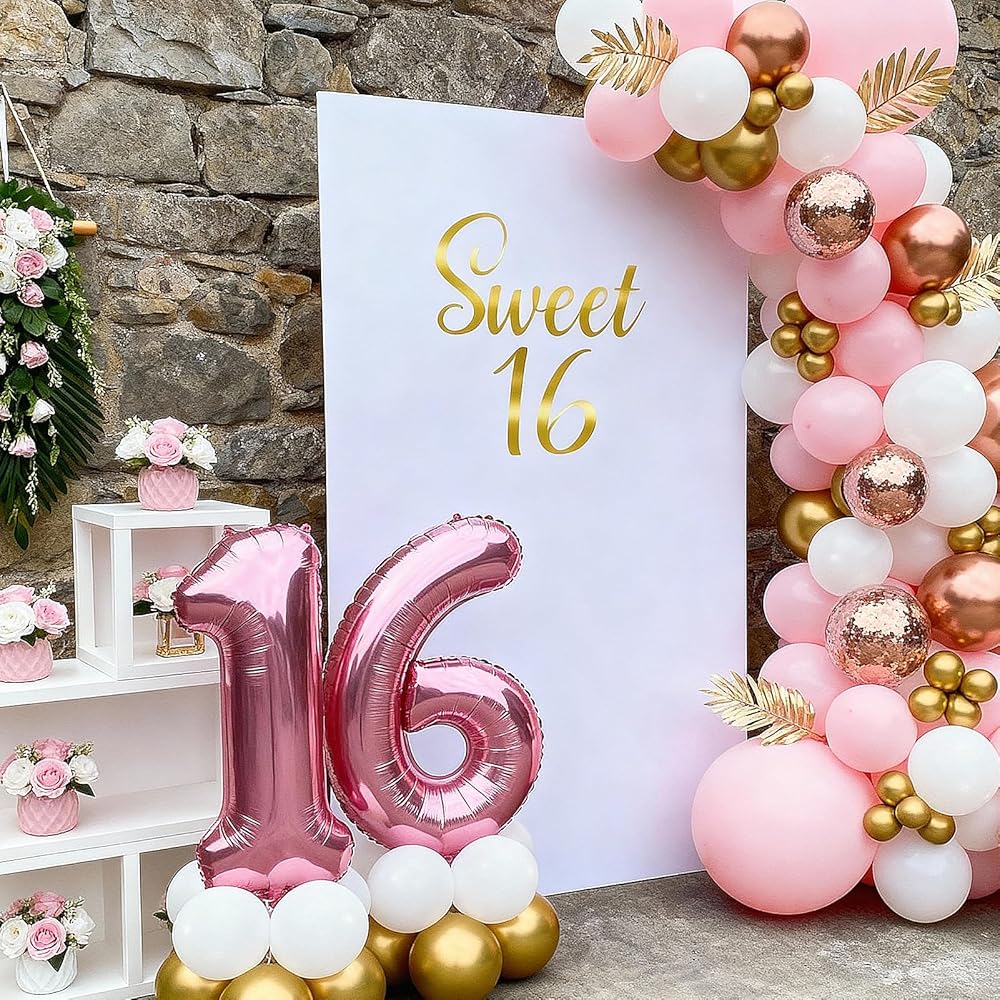🎂BRIGHTEN UP YOUR BIRTHDAY WITH DECOR -16th Birthday Decor includes a "Sweet 16" sticker, 29.92 x 11.8 inches. It is a perfect addition to your birthday party decorations, perfect for decorating the background of the balloon arch, which can add fun and festivity to your celebration.