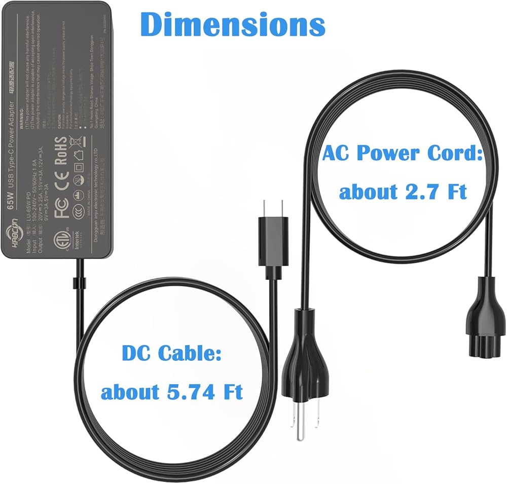 [FCC Listed] 65W 45W Universal USB C Fast Type C Charger Replacement for Lenovo USB Type-C Laptop,Lenovo ThinkPad X1 Carbon,Lenovo X1 Yoga,ThinkPad X1 Tablet,Fast Charging Type C Adapter Power Supply