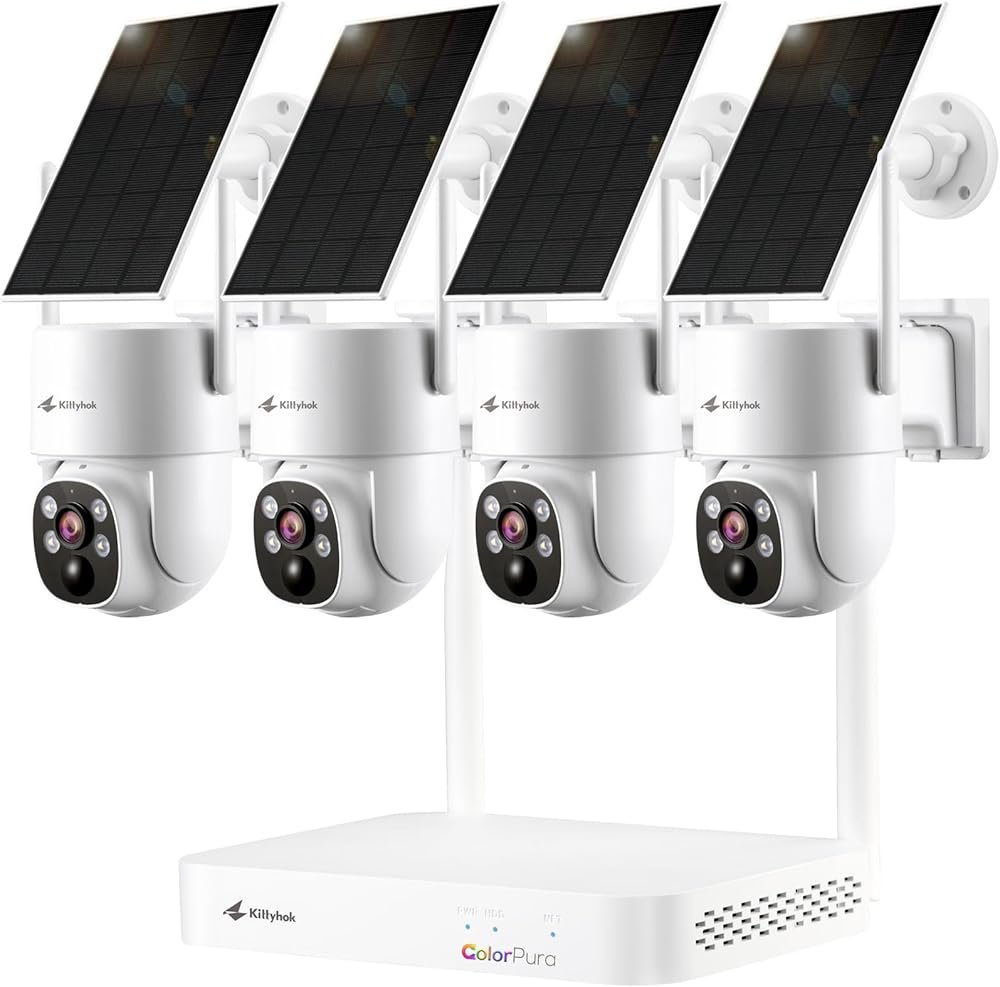 Kittyhok 2K Solar Security Camera System Wireless Outdoor, 4pcs ColorPura 360° PT Camera for Home Surveillance, Pro Color Night Vision, AI Detection, 10CH NVR, 60-Day Local Storage, No Subscription