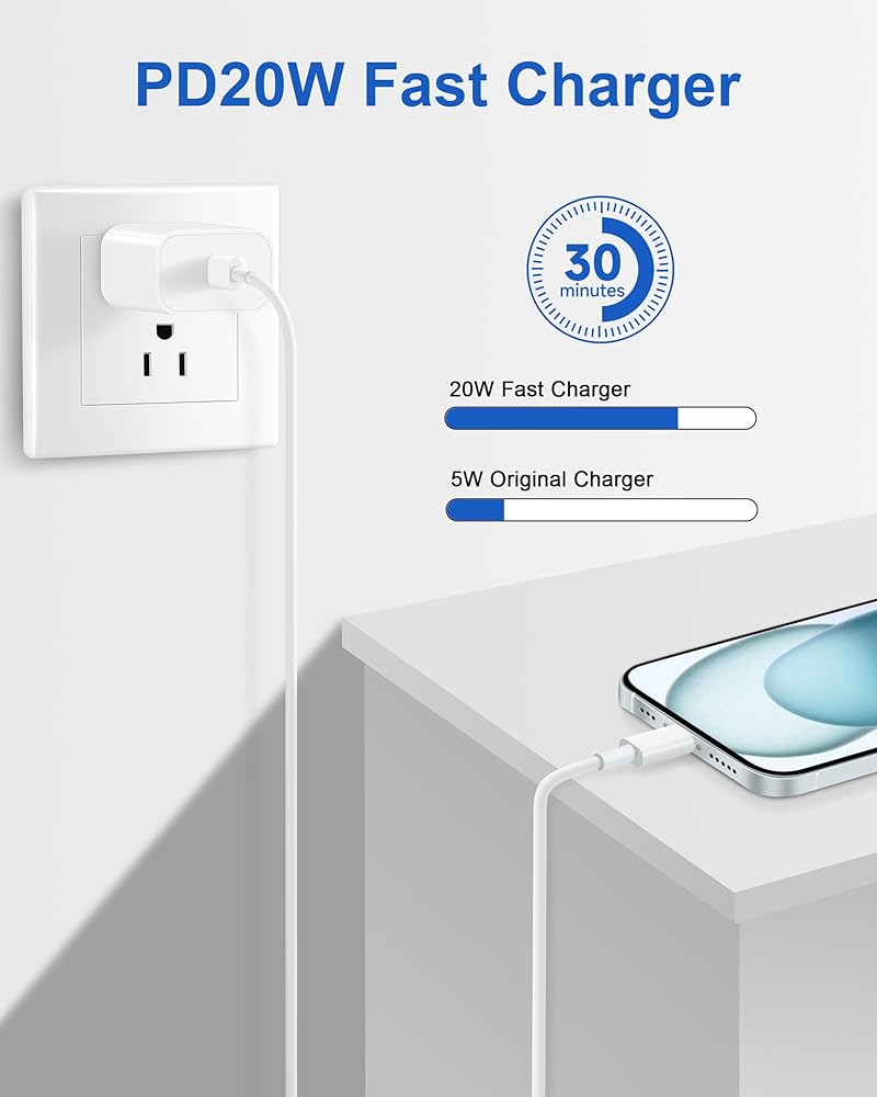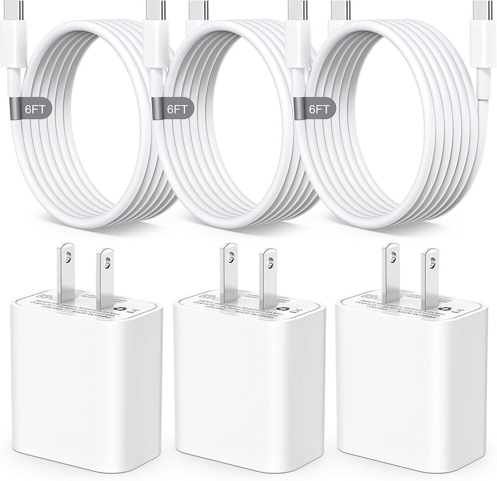 3-Pack 20W USB C Fast Charger Block with 6FT USB-C to USB-C Fast Charging Cable