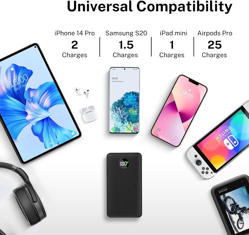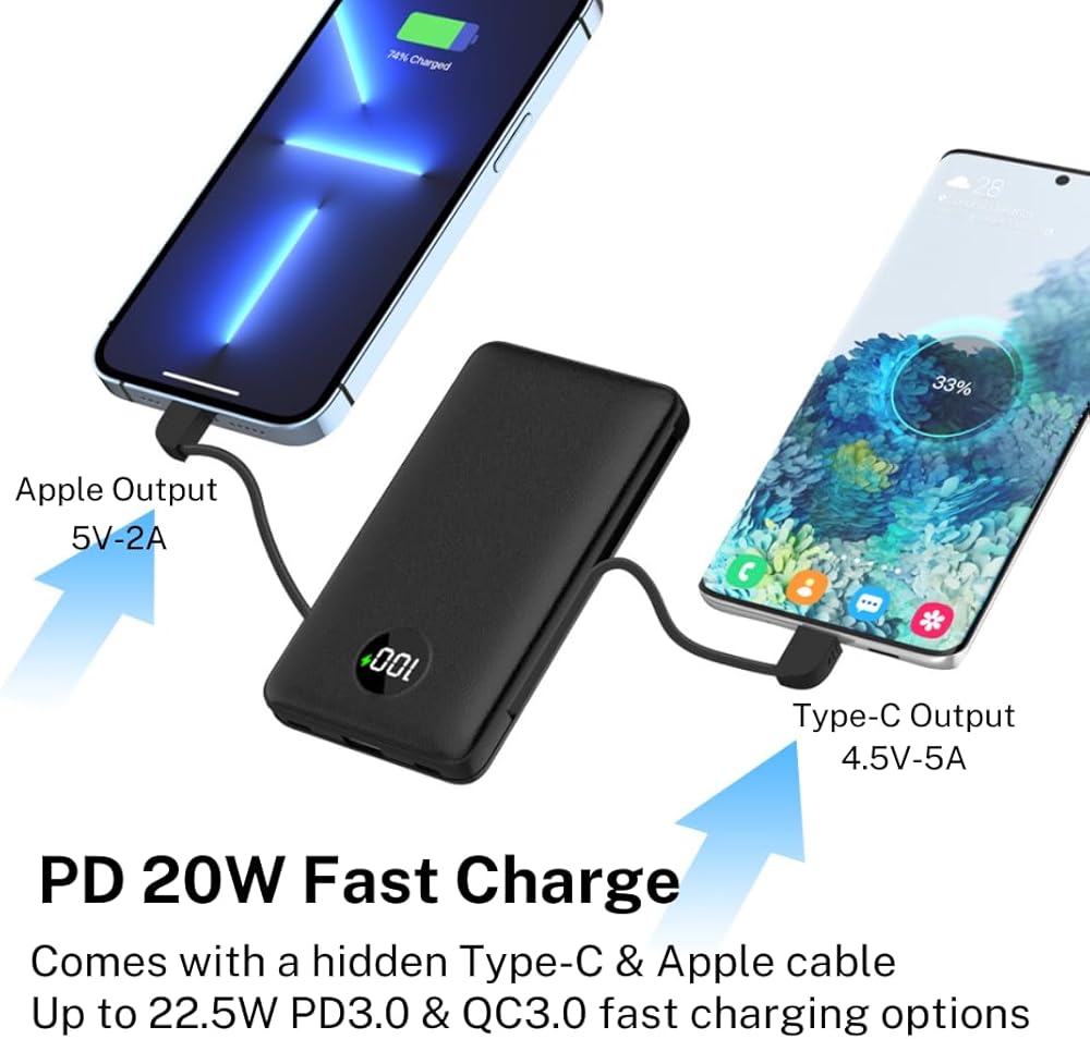 Fast Charging: Up to 22.5W PD3.0 & QC3.0 fast charging options. The power bank will charge your phone from 0 to 50% in half an hour. Allowed on airplane carry-on