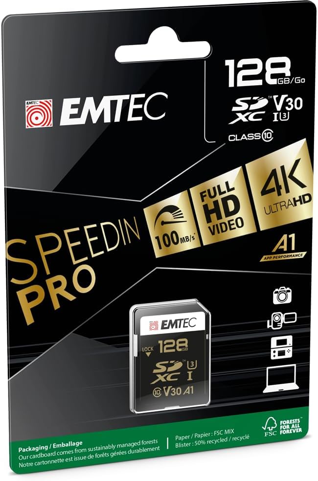 Emtec SPEEDIN Class 10 UHS-1 U3 V30 SD Memory Card (128GB)