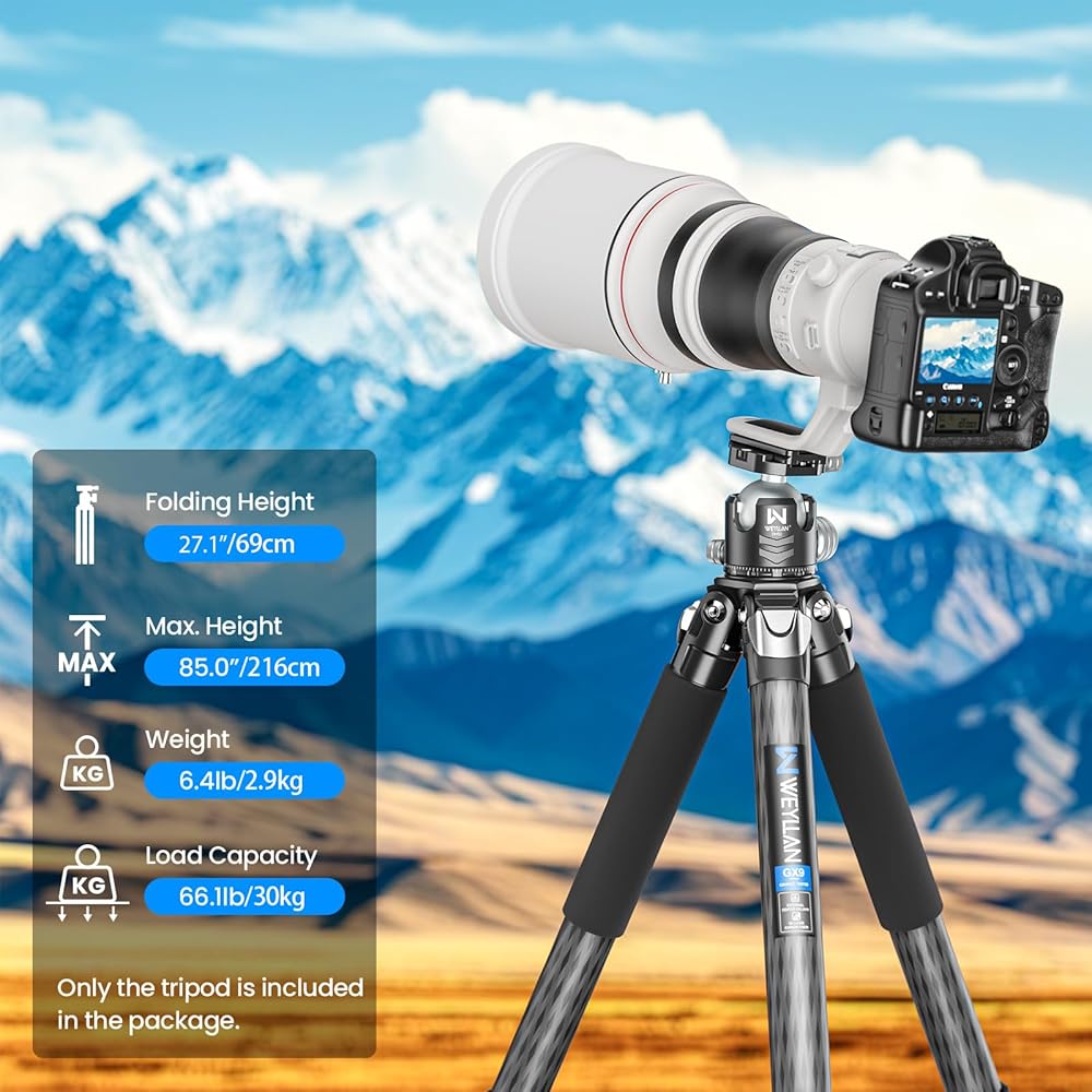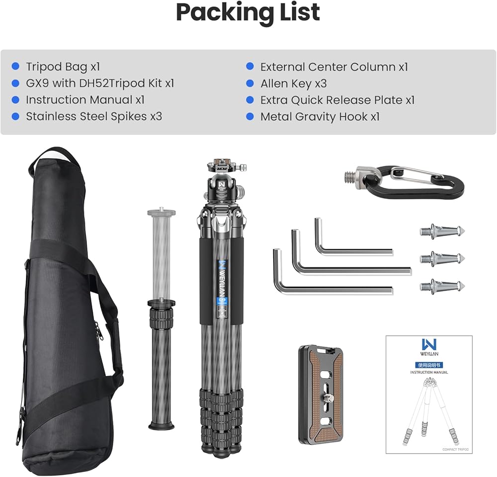 👍【High Quality 10 Layer Carbon Fiber Tripod】 The compact tripod is made of high-quality carbon fiber material and aluminum alloy. The legs of the tripod are composed of 10 layers of carbon fiber, which is stable and durable. At the same time, the carbon fiber material also reduces the weight of the GX6 camera tripod.