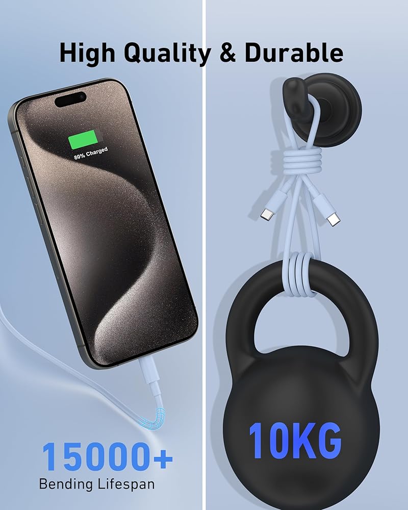 [3FT+6FT+10FT USB C to USB C Cable] Provides a maximum power output of 60W/3A with a friendly and reversible USB-C port design, tested to withstand 20000+ bending, reliable TPE material design to extend 5x longer service life. The 3ft+6ft+10ft long length cable makes it easy to charge your new iPhone 15 and iPad in your bedroom, couch or office.