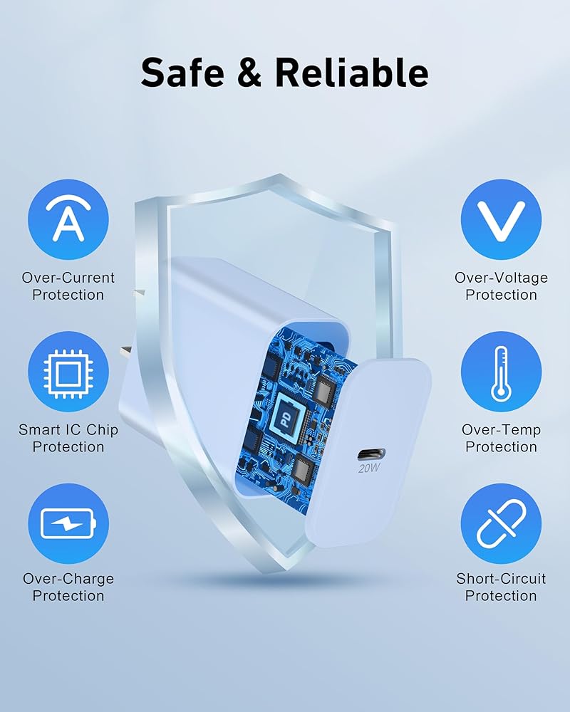 [Multiple Safety Protection] USB C power adapter Built-in multiple safety systems provide comprehensive protection for your devices. Smart chips can protect your devices from over-current, over-heating, over-charging, and short circuits. When the battery is fully charged, it will automatically stop charging to ensure the safety of the device.