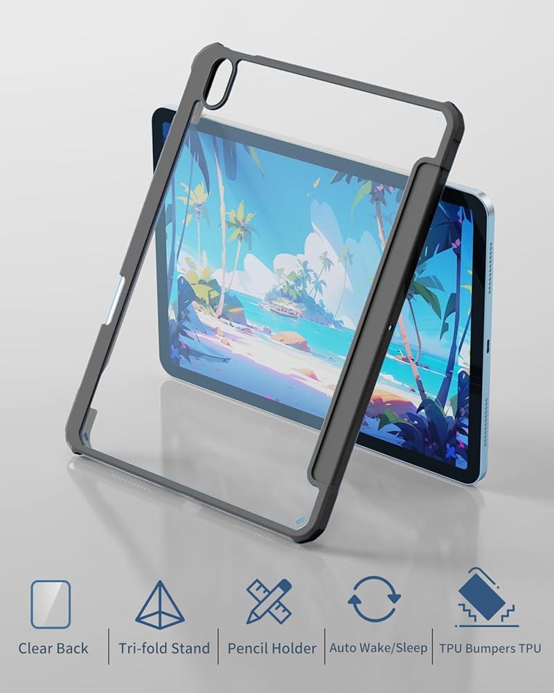 Aoub Case for iPad (A16) 11th Generation 11 inch 2025, iPad 10th Generation 10.9 inch 2022 with Pencil Holder, Clear Transparent Back Shell with Shockproof Cover, Auto Sleep/Wake, Black