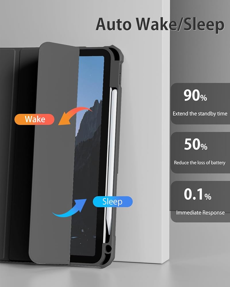 【Auto Sleep/Wake 】Built-in magnetic strip, our iPad 10th Gen case automatically wakes or puts your tablet to sleep when the lid is opened and closed, protects and extends battery life; Easy access to all the controls and features (Cameras, Speaker, Ports and Buttons)