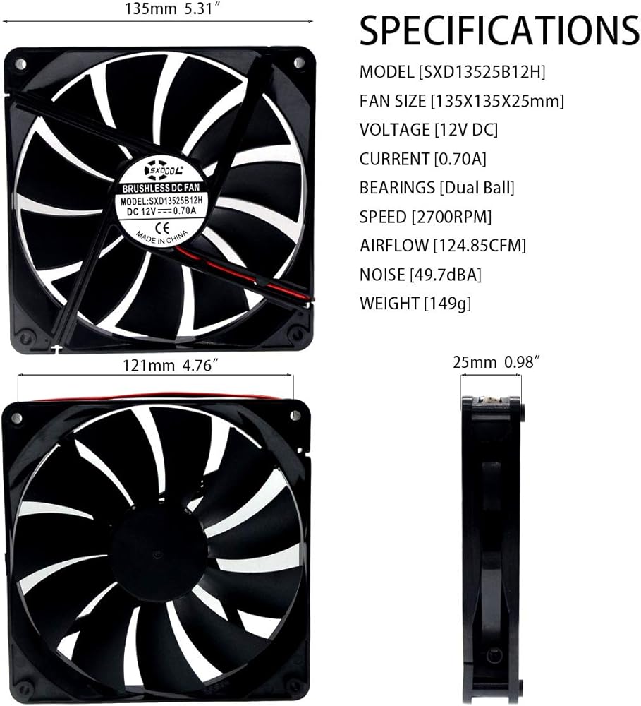 135X135X25mm 12V 0.70A DC Brushless Cooling Fan for PSU Power Supply,PC Case Chassis,High Speed CFM Powerful Cooler