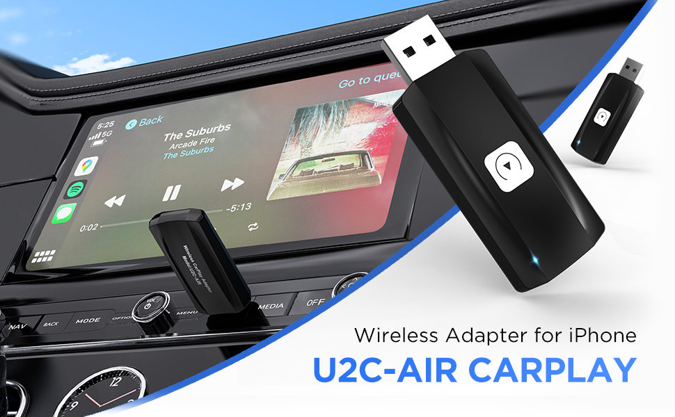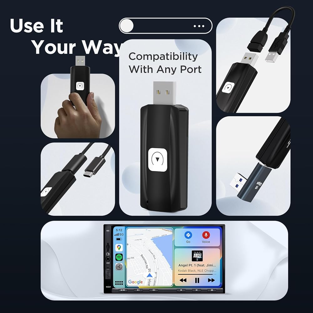 【Fast and Stable Connection】Say goodbye to buffering, lag, and dropouts. The wireless CarPlay adapter is equipped with a 5G chip, 5.8/2.4GHz WiFi, and BT5.2 support, providing lightning-fast and stable connectivity. Even if your iPhone is in your pocket, it can be easily recognized, letting you enjoy uninterrupted Spotify, podcasts, reading messages, and GPS live navigation anytime.