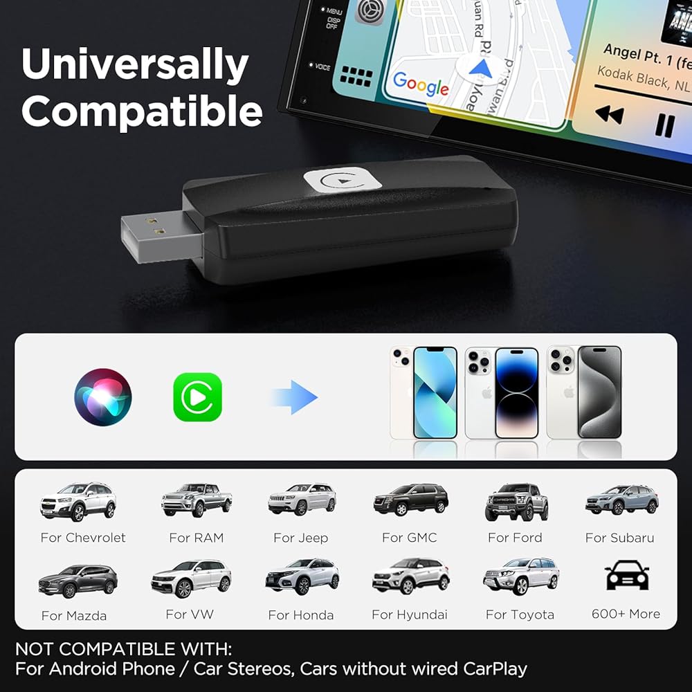 【Seamless Compatibility】The wireless CarPlay dongle is compatible with all vehicles that support wired CarPlay and iPhone iOS 12+. To further confirm if your car is compatible with wireless CarPlay, please refer to the compatibility chart at the bottom of the page.