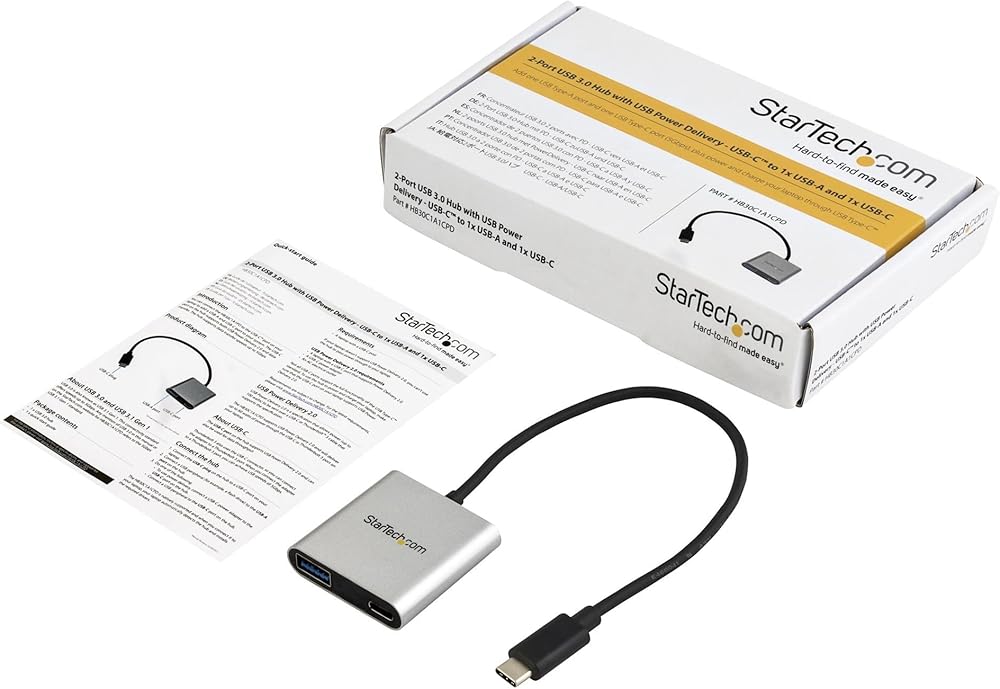 This TAA compliant 4-port USB 3.0 hub lets you connect a wider range of peripherals to your MacBook Pro, MacBook and other USB-C laptops. The hub expands your laptop or desktop connectivity by enabling you to connect both USB-A and USB-C devices through a single USB Type-C or Thunderbolt 3 port. Expand your USB connectivity Extend the life of your current USB 3.0 devices and take advantage of newer devices that feature USB-C. This USB-C hub lets you expand your USB connection options using the USB-C port on your computer. It offers three USB-A ports and one USB-C port, so you can connect traditional USB devices as well as newer USB-C devices to your USB-C laptop. Take it with you wherever you go You can travel lighter, with a single USB-C adapter that lets you connect virtually any USB peripheral. With its compact and rugged design, you can take this portable USB 3.0 hub anywhere you go. Because it's so compact, it's easy to tuck into your laptop bag and only takes up a small amount of desk space when you connect it to your workstation. The hub is ideal for use in hot-desk or BYOD (Bring Your Own Device) environments. For portable applications, having the integrated host (USB-C) cable means one less thing to remember to carry with you. Add four USB 3.0 ports in seconds This USB-C expansion hub is multi-platform compatible, which means it will work with a wide range of operating systems such as Windows, macOS, Linux and Chrome OS. It installs automatically once you connect it to your laptop, so you can be up and running in seconds. The HB30C3A1CFBW is backed by a StarTech..