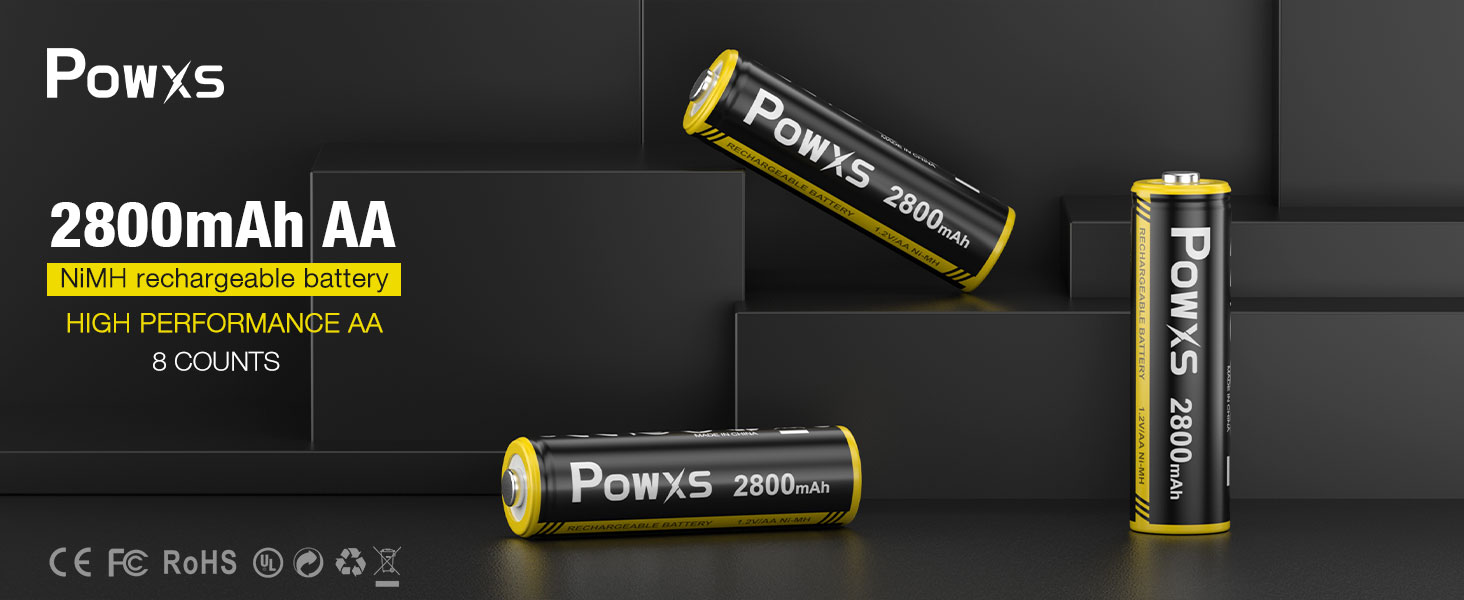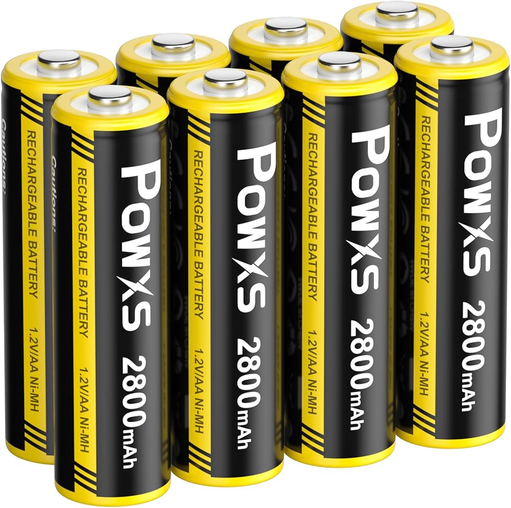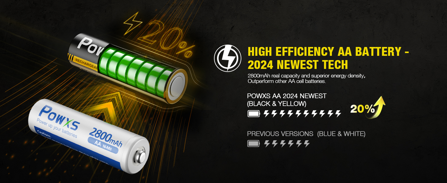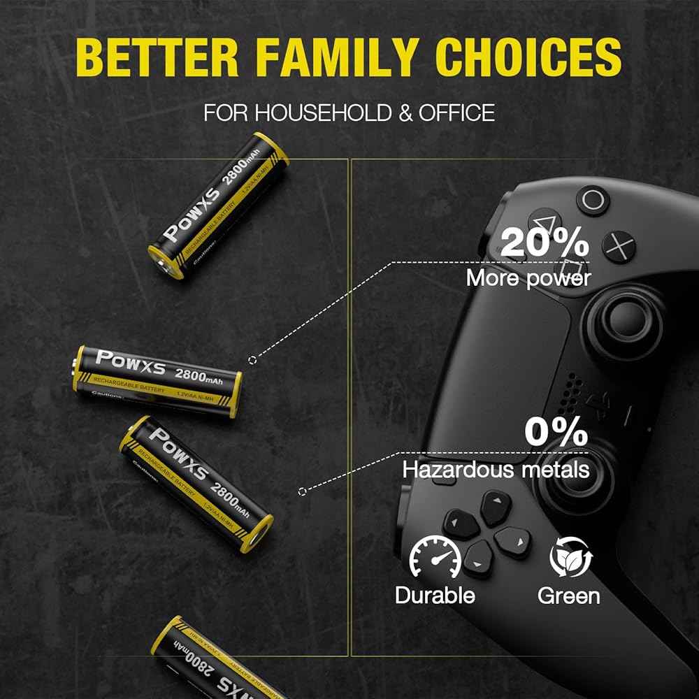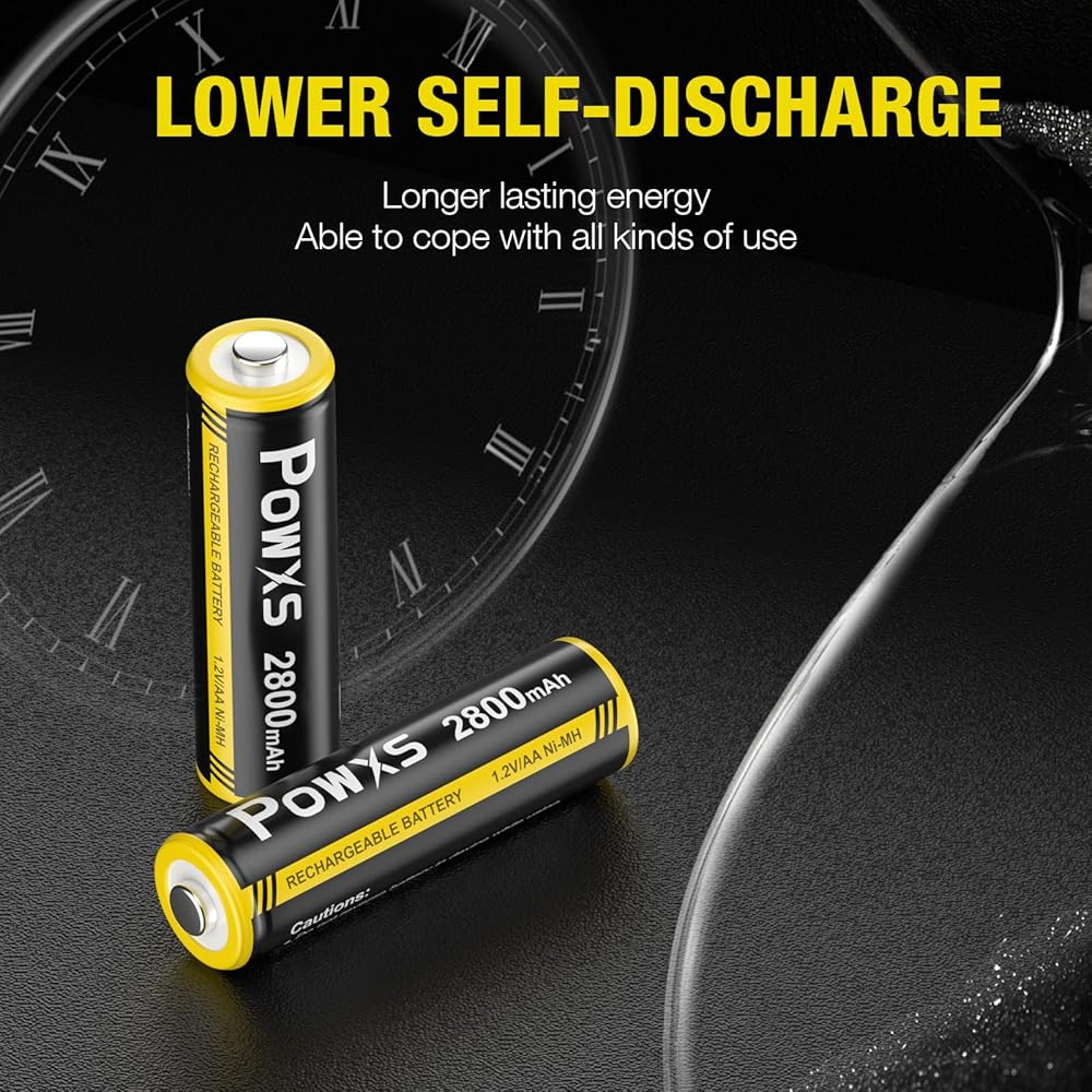 🔋【High Efficiency AA Battery】- Rechargeable POWXS AA batteries with a high capacity of 2800mAh and superior energy density, outperform other AA cell batteries by last at least 20% longer.