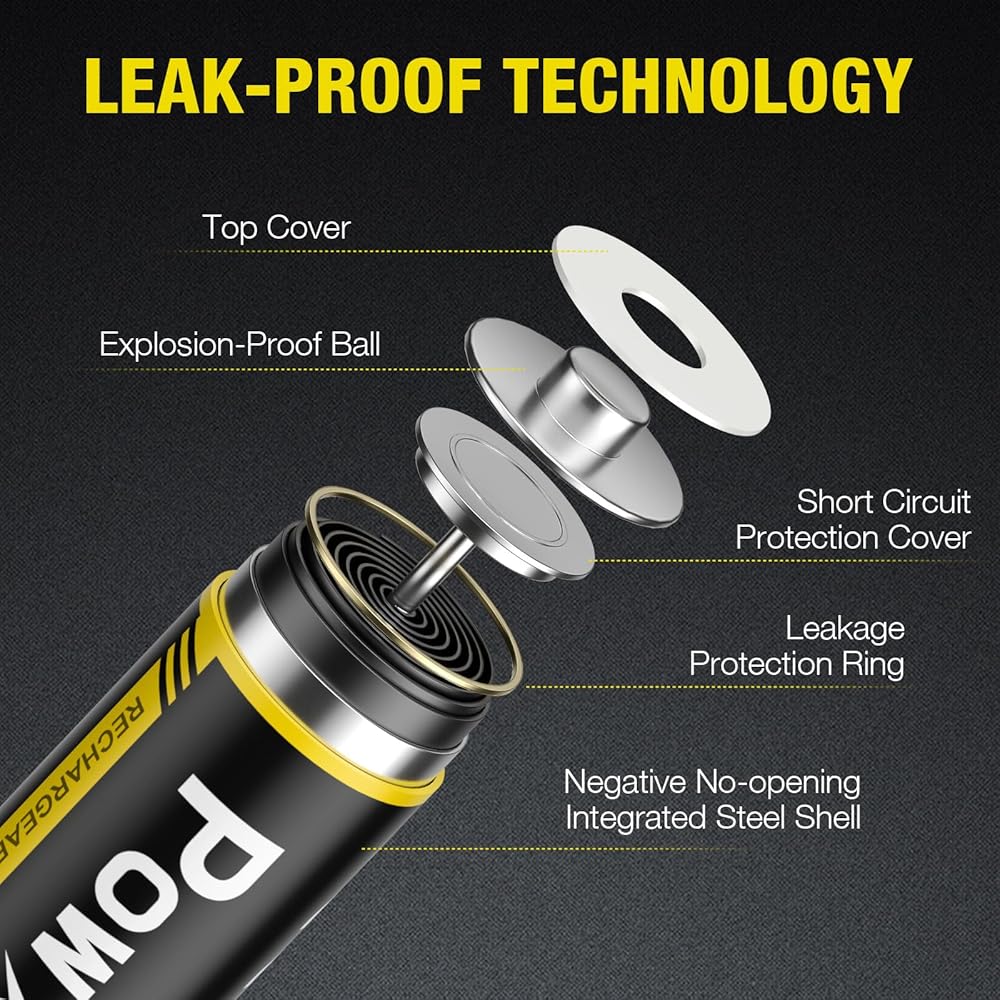 🔋【Safe & Leakproof】 - Free of Hg/Cd/Pb and fully recyclable, these NiMH AA batteries feature a stainless steel surface that effectively prevents leaks.