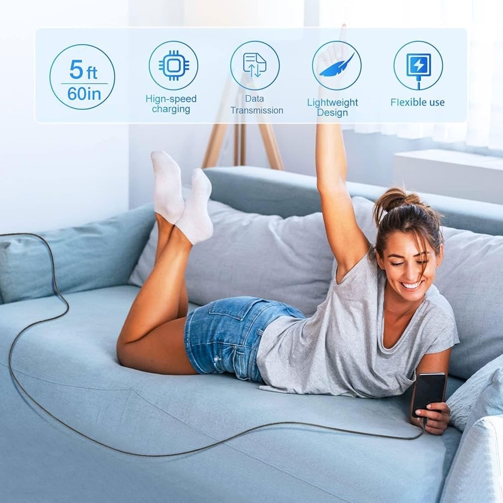 【sturdy and durable】: USB Ccharging cables are more sturdy and durable. Highly pure and thicker copper wires ensure maximum 3 Amps current and 480Mbps transfer speeds for your devices in 100% safe case. Length of 5FT, easy for charging on different occasion, for travel, home, car, office, etc.