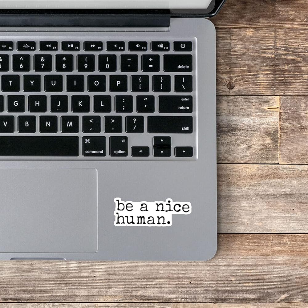 • Be A Nice Human - Kindness stickers - 3 pack - laptop stickers - (1) 2.5, (1) 3 & (1) 4 Inch vinyl decal - super simple & easy add to laptop, phone, tablet and more.