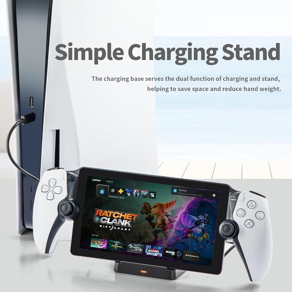 【Convenient Charging Indicator】The charging stand compatible with playstation portal has a built-in smart charging control chip. The orange light stays on during charging and turns blue when fully charged.