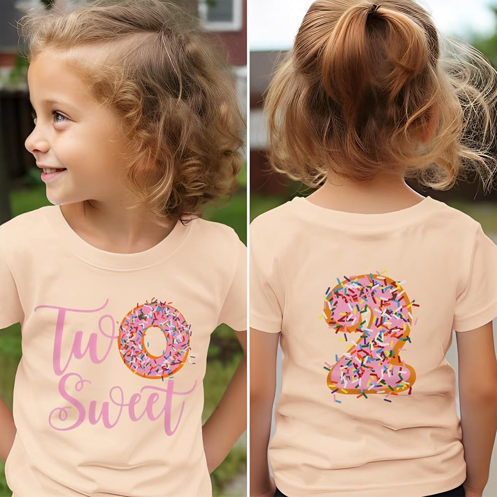🍩DESIGN: Super cute donut birthday t-shirt for toddler girl to celebrate their special day. Short sleeve sweet one graphic t-shirt, baby girl two sweet birthday shirt, funny birthday three is so sweet graphic tee, four ever sweet pullover tops, five is so sweet crewneck shirt is the best gift for your little one.