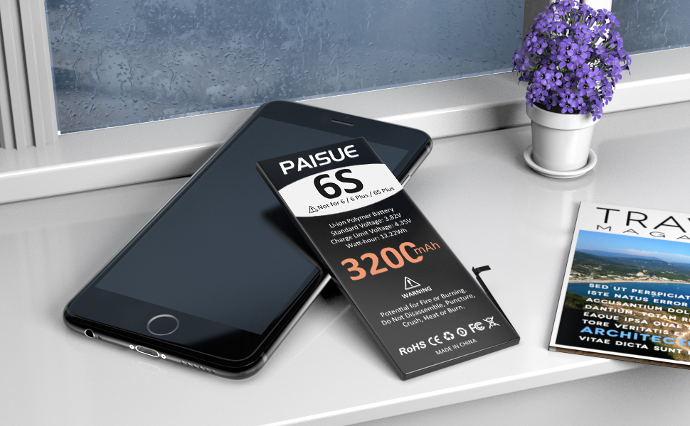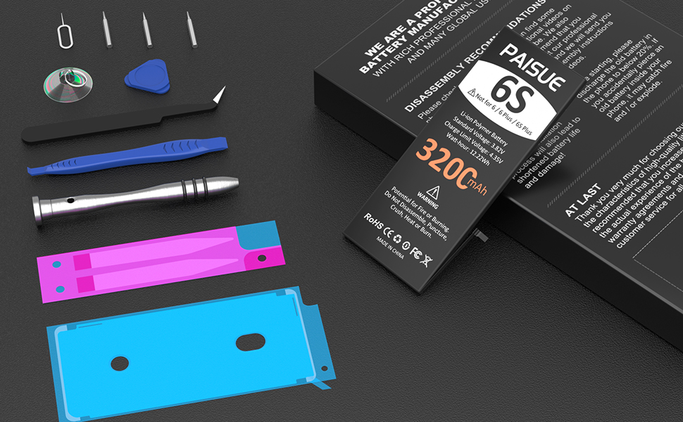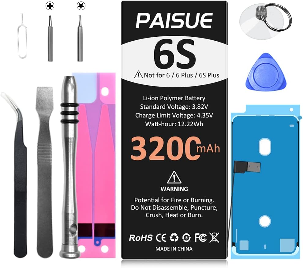 [3200mAh HIGH CAPACITY]: Extended 3200mAh capacity battery for iPhone 6S, PAISUE battery More Than Original/Other Battery. 2023 New 0 Cycle battery cell capacity is upgraded to store more power, bring more standby time, increasing battery life and and reduce your recharging times. Say goodbye to the trouble of old batteries!