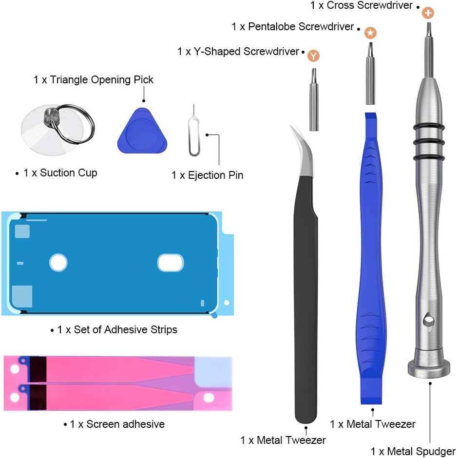 [EFFICIENT CHARGING]: Grade A+ cells ensure longer battery life and high-speed,efficient charging.Up to 800 highly efficient charge cycles are available. Full set of repair tools, including adhesives and instructions give you professional installation guidance. we suggest you to watch more relevant video about replacing the battery on YouTube before you replaced.