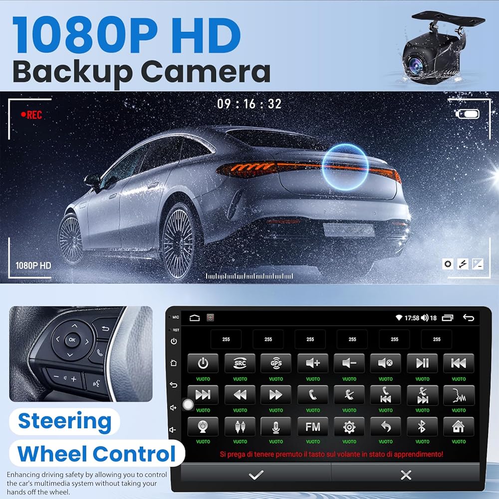 👍【AHD Backup Camera & SWC】This for Honda Civic stereo comes with AHD wide angle backup camera with clear night vision and waterproof design. When reversing, the display will automatically switch to the rear camera view to ensure safe and easy parking. Enjoy full control of your car stereo with convenient steering wheel controls, making your driving experience truly intuitive and hassle-free.