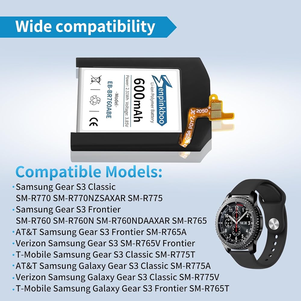 【Compatible Model】This Replacement Battery model is EB-BR760ABE.Compatible with Gear S3 Frontier SM-R760/Gear S3 Classic. please carefully examine your device model and old battery if it fits before purchasing.