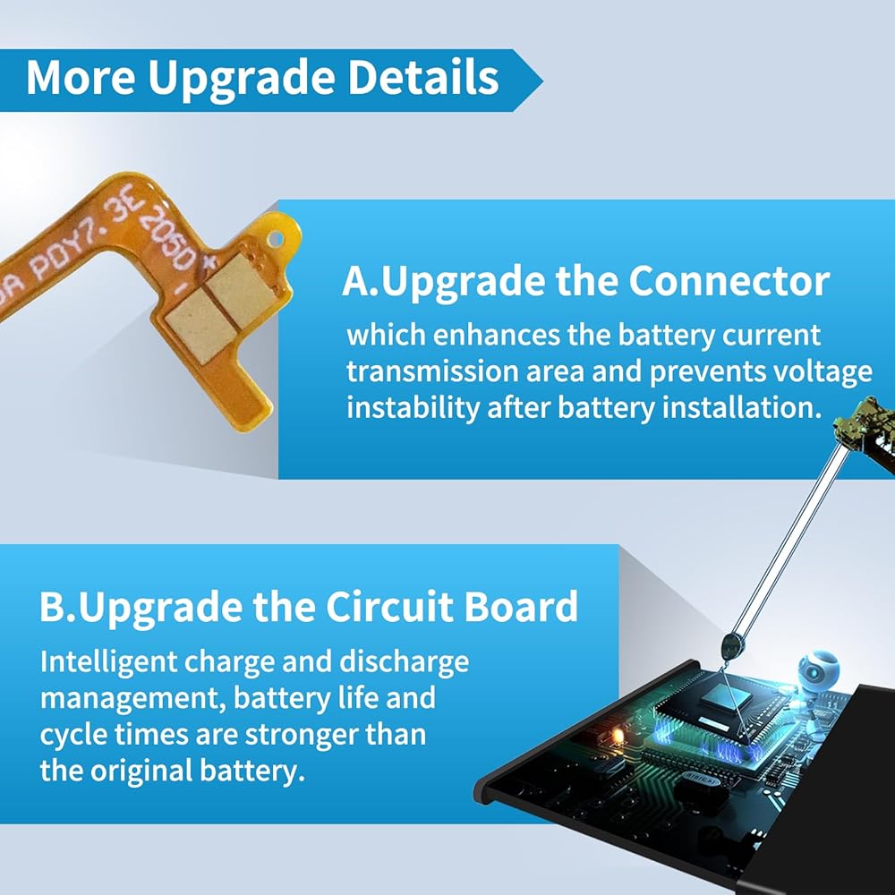 【HIGH QUALITY GRADE A PREMIUM BATTERY】Each battery is tested to strict quality control standards and includes a built-in IC chip to prevent overcharging, overheating, and other defects.You can choose it with confidence.