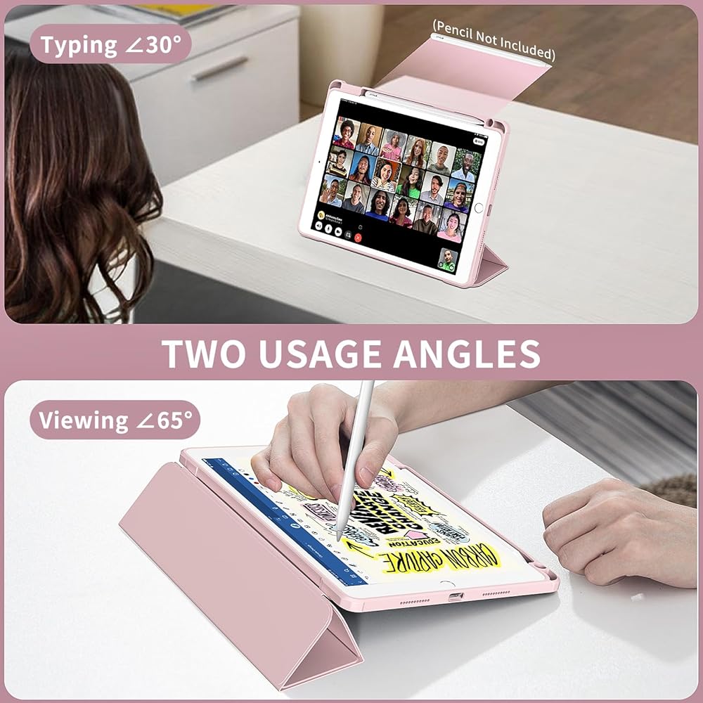 【ADJUSTABLE INTO A TRIFOLD STAND】The outside of the cover is made of high quality PU leather and flexible soft TPU, the inside is made of soft microfiber lining, which can effectively prevent screen scratches. JKSML iPad Cover 9th Generation Case can be adjusted to a stable trifold stand, you can watch videos at a ∠65° angle and type at a ∠30° angle.