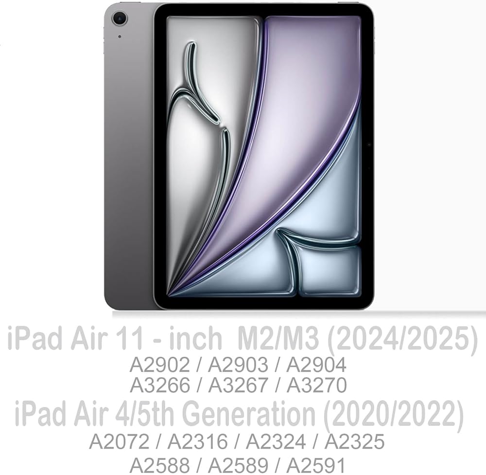 Specifically designed for iPad Air 11-inch M2 (2024), iPad Air 5th Generation 10.9 inch 2022 (Model Number: A2588/A2589/A2591), iPad Air 4th Generation 10.9 inch 2020 (Model Number: A2316/A2324/A2325/A2072) tablet Only. No compatible with any other devices.