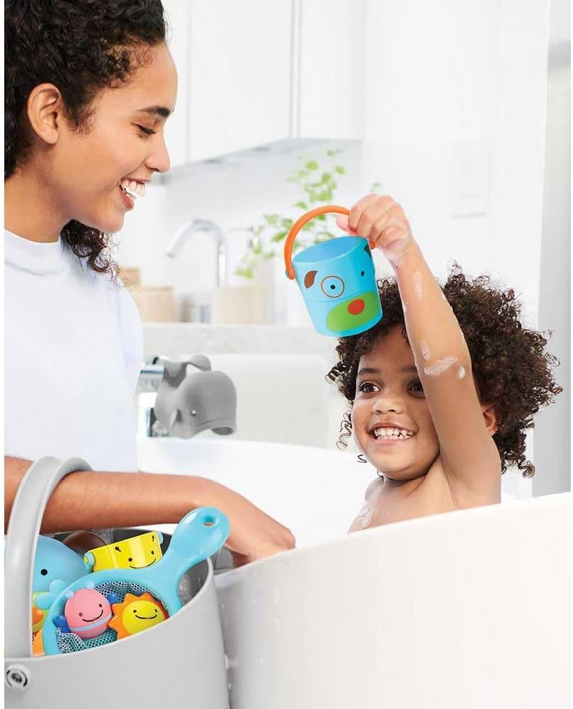 Coordinates with Sesame Street Collection: Our stack & pour bath buckets seamlessly integrate with Skip Hop x Sesame Street collection, letting you mix and match with other coordinating items for a fun and cohesive look!