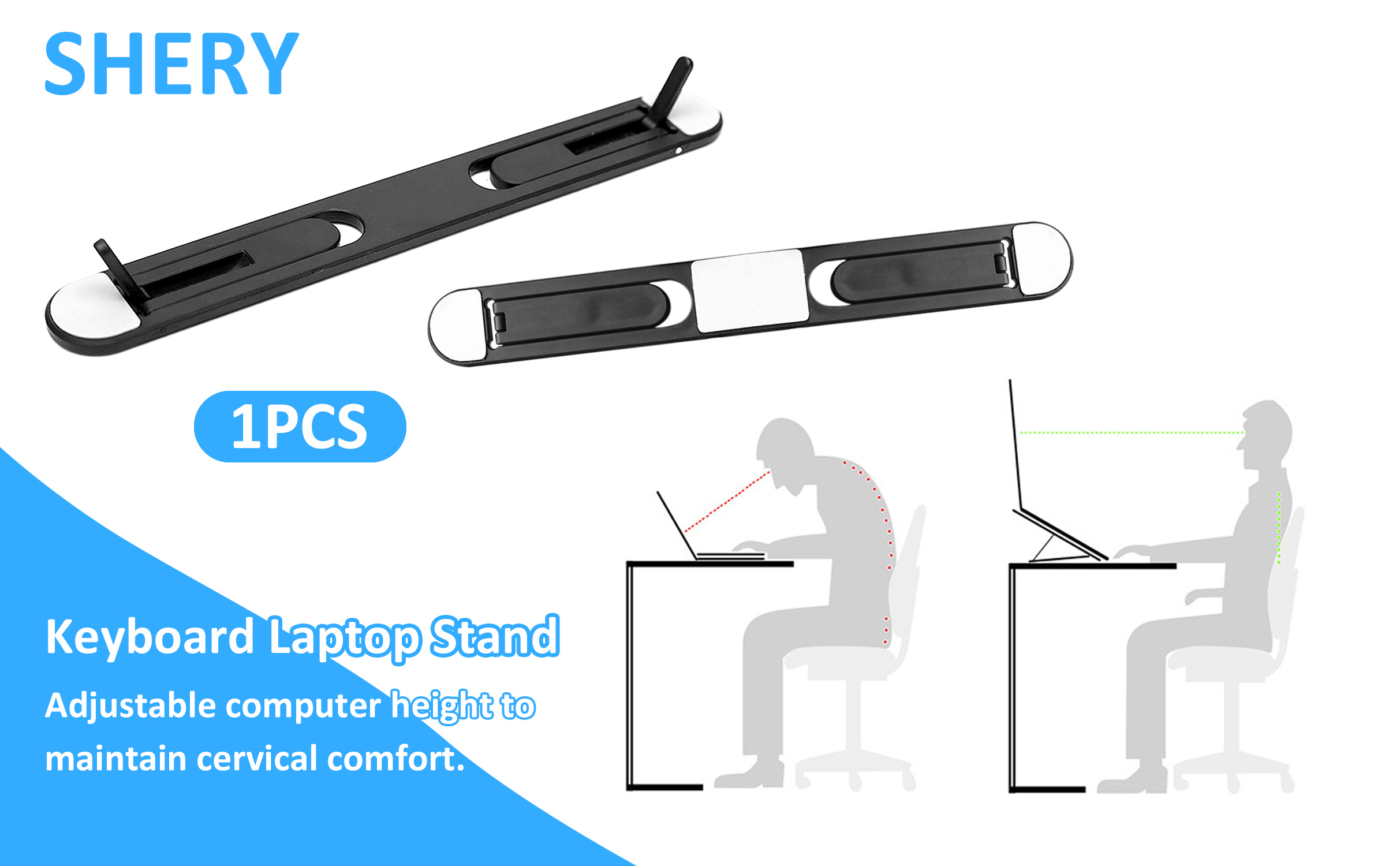 Keyboard laptop stand: our package contains 1pc black laptop stand. Its size is 216*26mm and weight is 50g. It is used to raise your laptop.