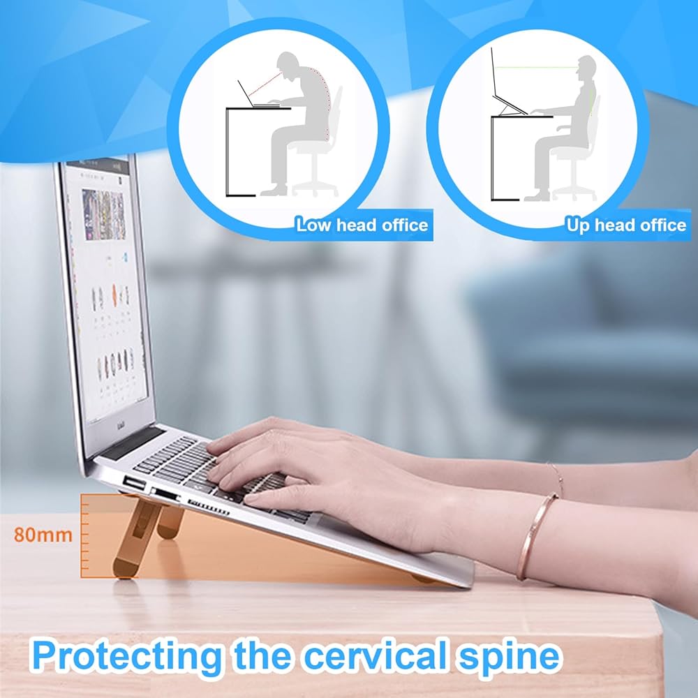 Prevent overheating: When the folding laptop stand is in its unfolded positions it enables more airflow to the underside of the laptop, enhancing heat efficiency and low down your laptop's temperature.