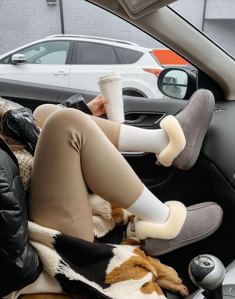 HomeTop women's faux wool memory foam slipper with fluffy collar is the perfect way to enhance those laid-back moments spent relaxing at home.