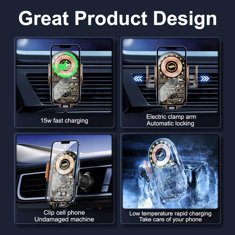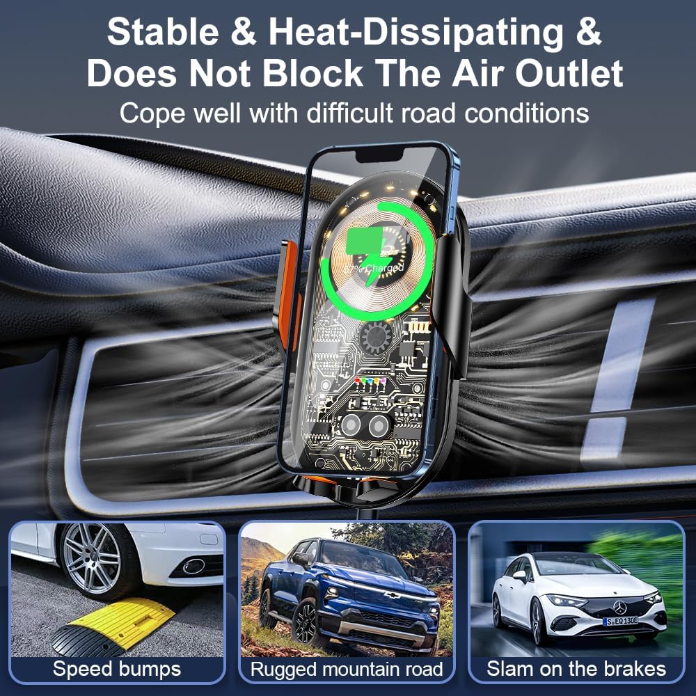 【Supercapacitor Quiet Motor, You Can Easily Remove the Phone】Built-in supercapacitor. Even when the power is unplugged or the car is off, the wireless charging mount can freely open and close the clamp arms 300-500 times to easily remove the phone. The operation is more convenient.