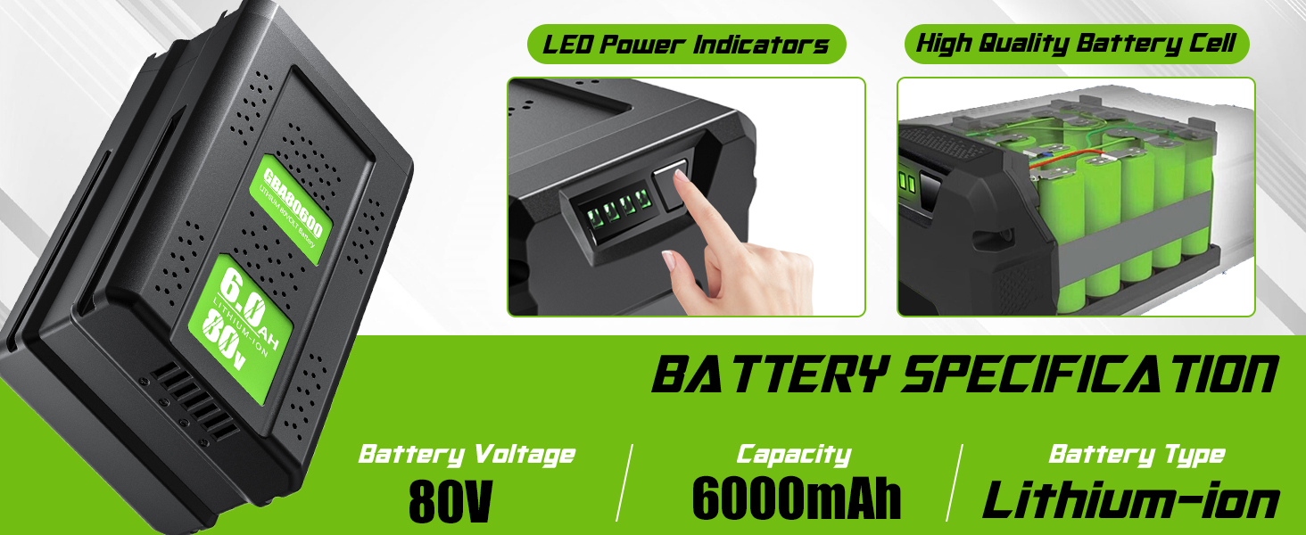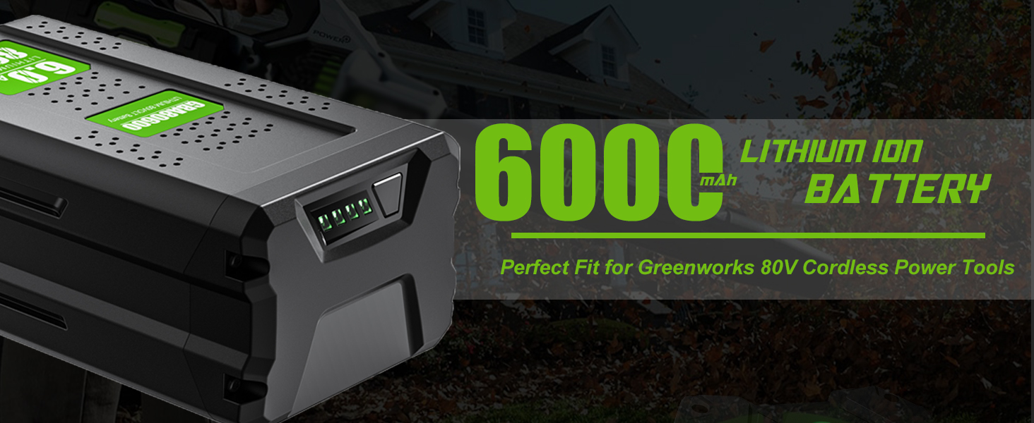 【80V Lithium Battery】- Type: Lithium-ion, Voltage: 80V, Capacity: 6.0Ah, Replacement battery for Greenworks Pro 80V lithium power tools