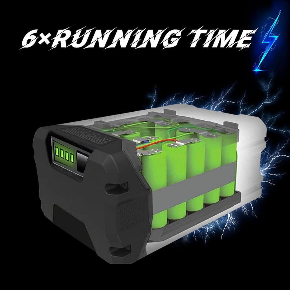 【High Performance Battery】- 6000mAh high capacity Lithuim-Ion battery replacement for Greenworks is powerful cordless battery and can work long lasting time, even in the most extreme conditions, it can run longer time than other 4.0Ah battery, it also have smart 4 led indicators to show the batterty charging and using situation
