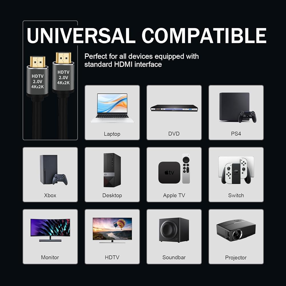 PERFORMANCE – This HDMI cable supports transmission of HDR (High Dynamic Range) video, full 60Hz at 4K resolution, 2160p, band width speed of up to 18GBps to meet the latest HDMI standards.