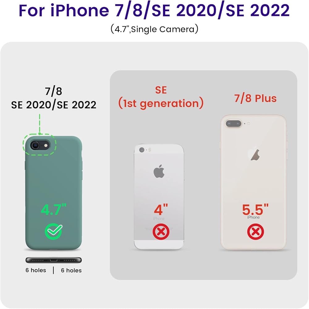 【Durable Silicone Case】-This newly released iPhone case is compatible with iPhone series of 7/8/SE 2020/SE 2022(4.7''), which will perfectly fits your iPhone with precise cutouts for all buttons and ports. The simple and elegant case features a refined design for a maximum durable performance.