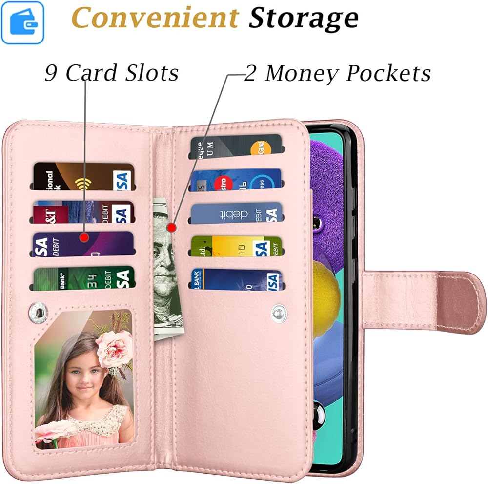 • 👑[Multi-Functional] The samsung a71 5g case with 9 card slots & 2 money pockets conveniently store multi credit cards, cash, ID, lovers or child's photo. Meeting your all day needs outside.