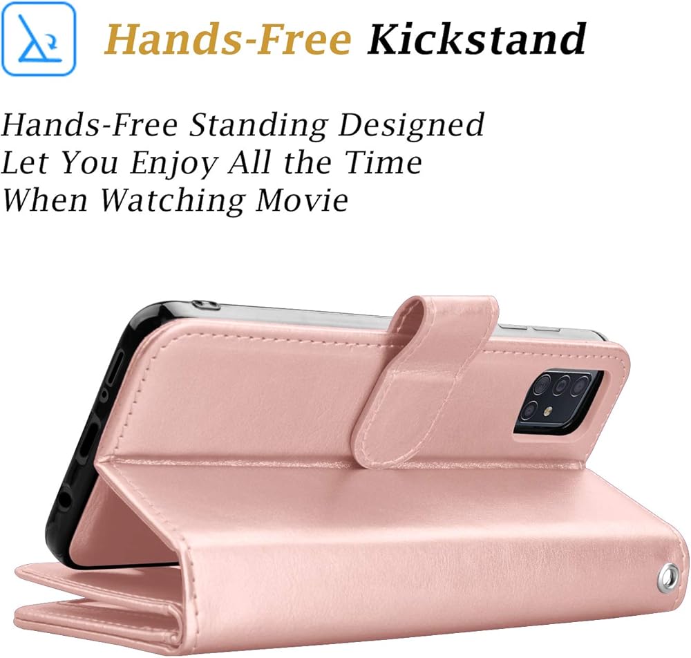 • 👑[Samsung Galaxy A71 5G Wallet Case] Precision cut-outs allow easy access to all buttons. Kickstand support feature for comfortable video viewing, reading, & face Time.