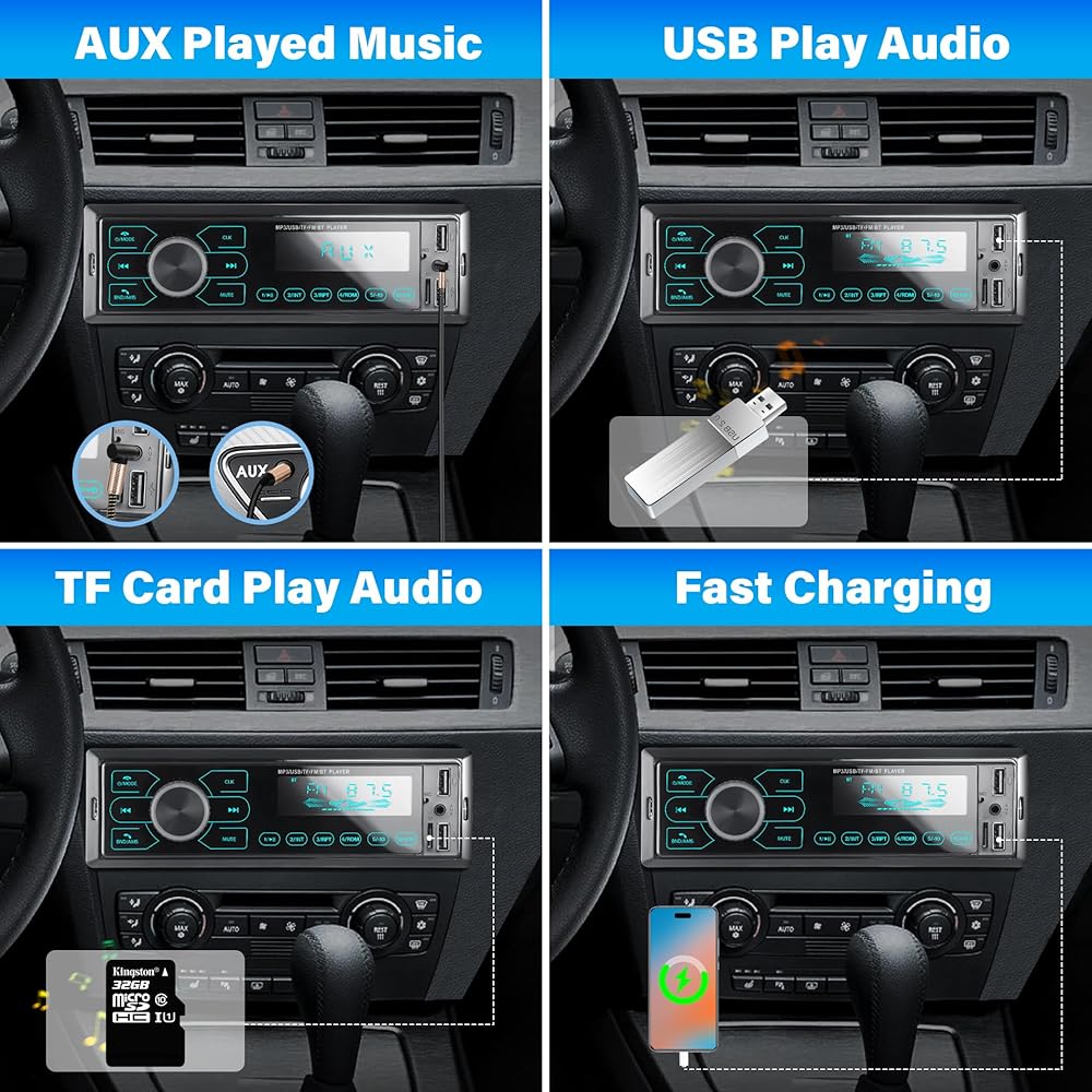 【TF/USB/AUX Radio】The USB port on the side supports quick phone charging and audio transfer from a USB stick, while the TF card slot supports audio transfer from a TF card.