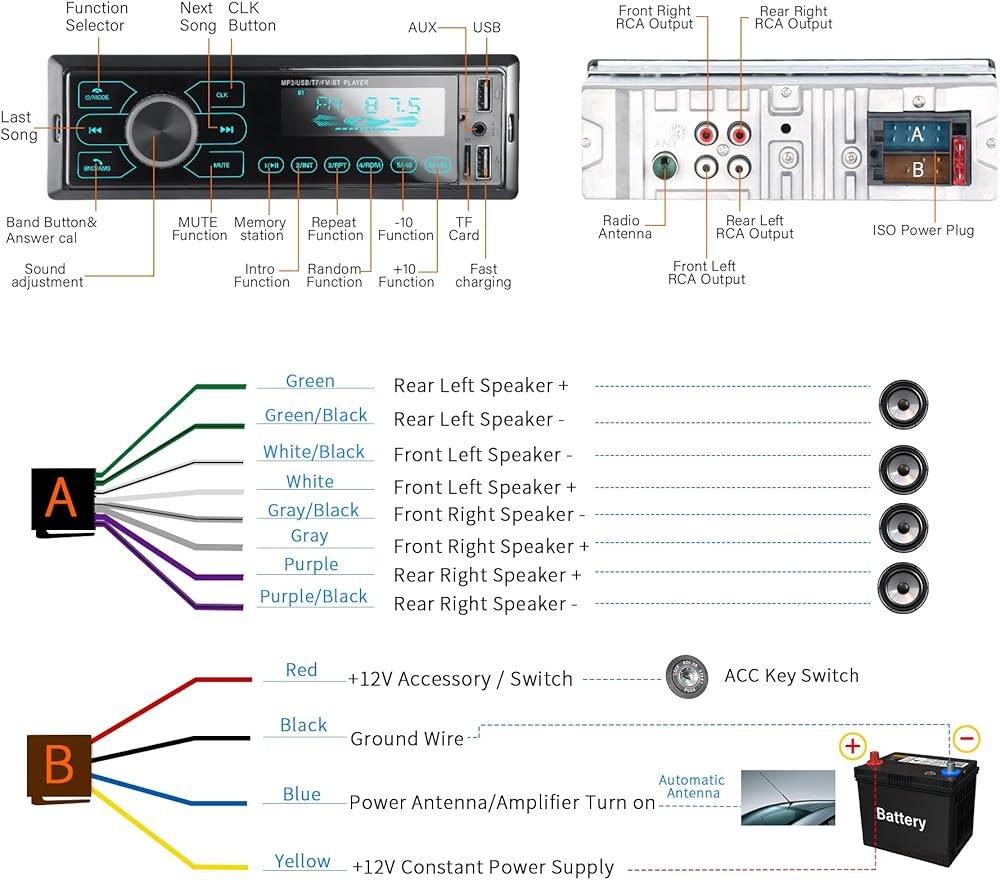 【Our Service】Note: Our car radio only supports 12V car DC voltage, not suitable for 24V car. Be sure to check the detailed wiring diagram in the picture before installation, and use the wiring provided by our walkie-talkie to make the correct connection to prevent it from being unusable. If you have any questions, please do not hesitate to contact us, we will be happy to help and will give you a good service, your satisfaction is very important to us.