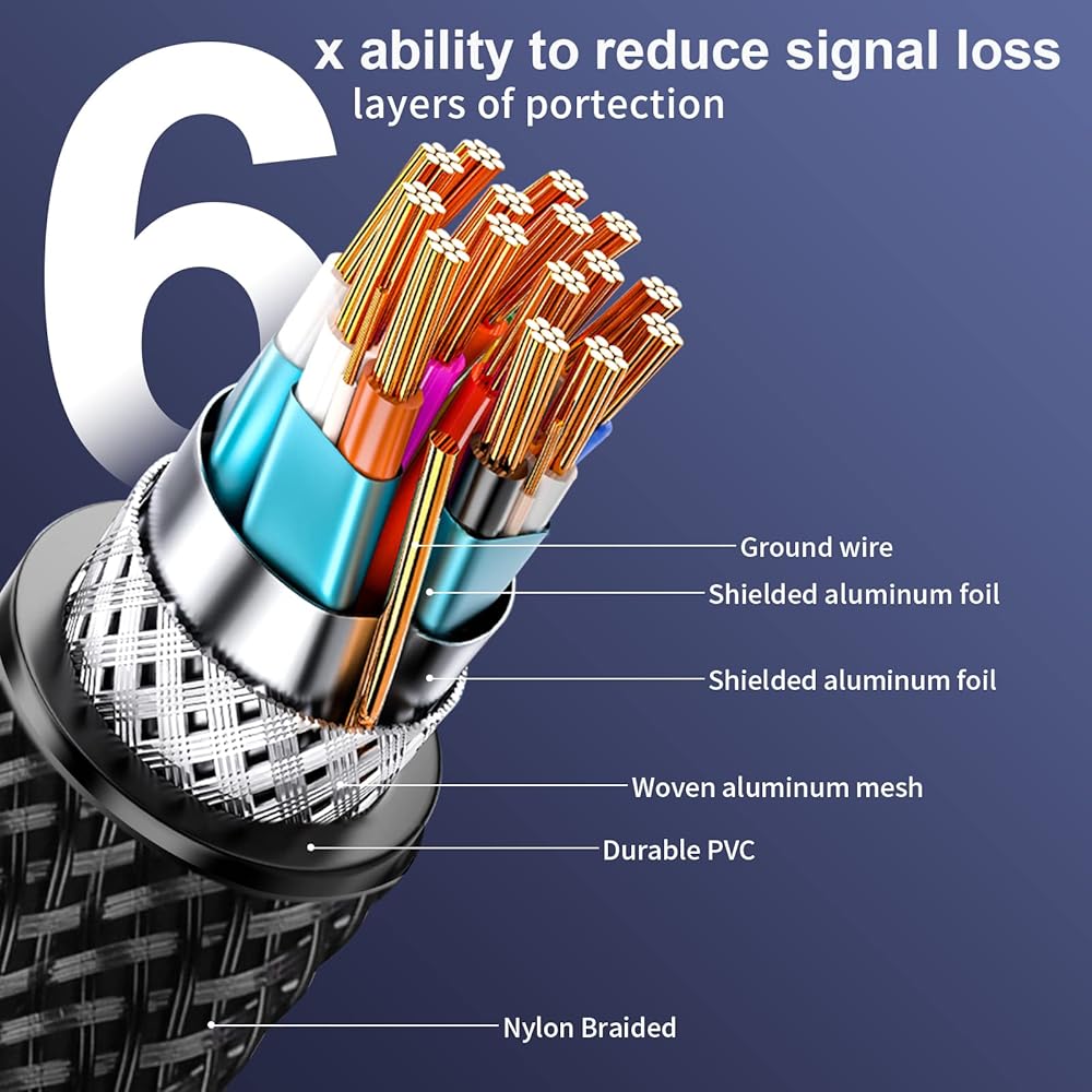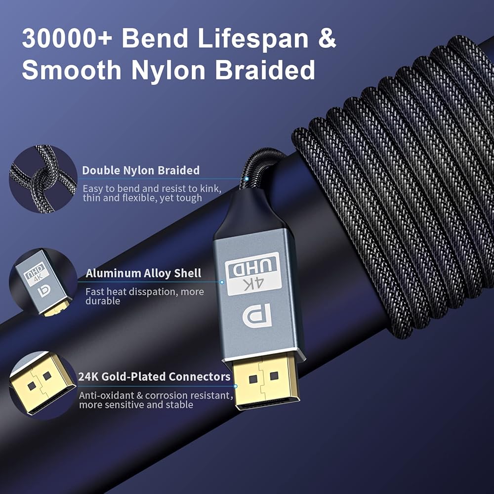 [3. Strong Anti-interference] Veetop display port cable each pair of signal cables are wrapped with aluminum foil, there is also an aluminum foil woven net, and there is a thick PVC and a flexible, strong, durable and waterproof nylon braided outer cover. Can effectively prevent signal interference.