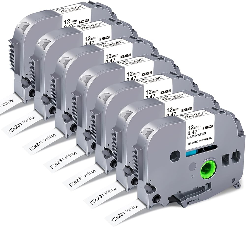 7-Pack Compatible with Brother P Touch Label Tape TZe-231 TZc-231 TZe Tz 12mm 0.47" Laminated White P-Touch Refill Tape Compatible with Brother Label Maker PT-D220 D210 H110 D600, Black on White